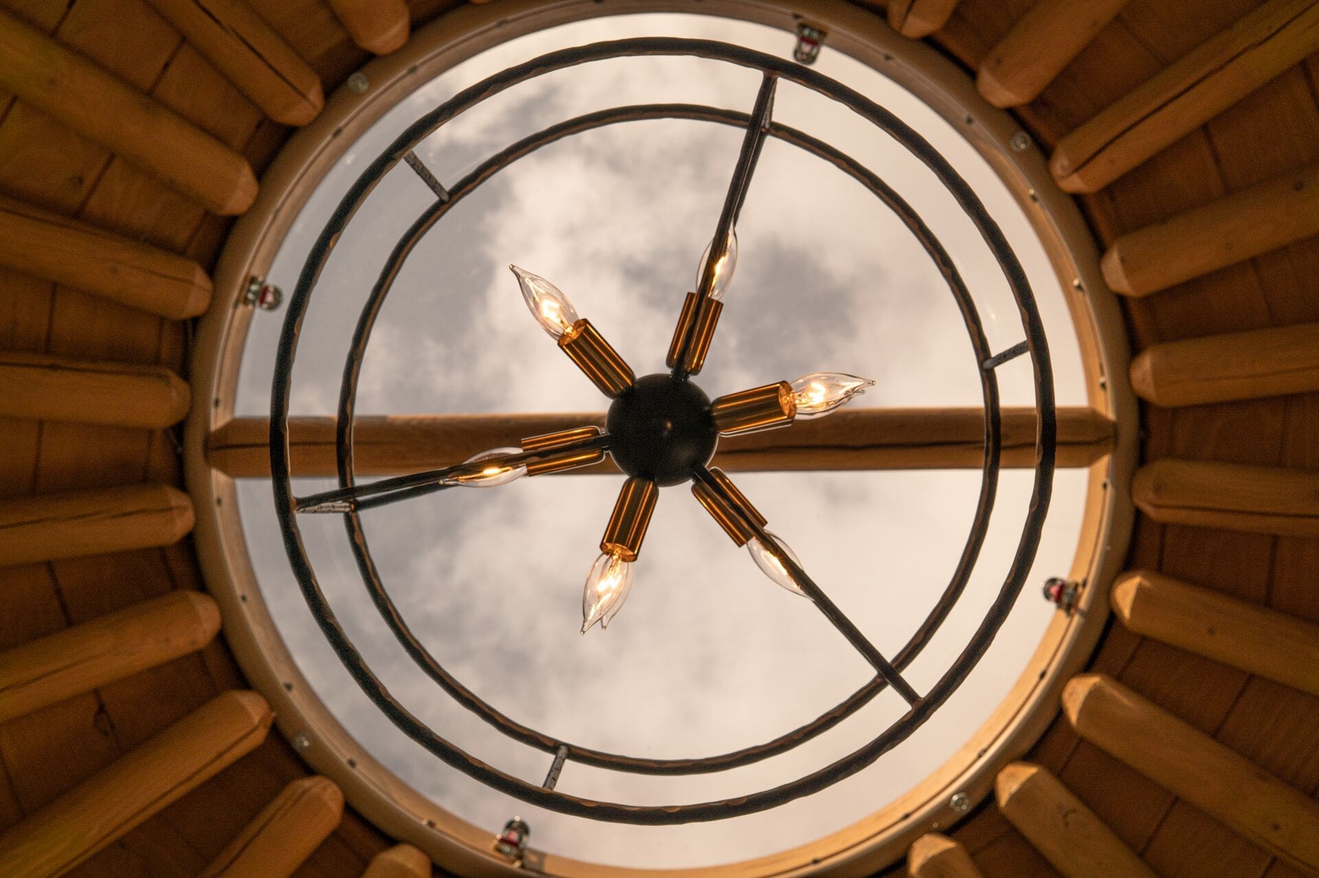 The standard roof dome is made from 1/4” clear acrylic. A tinted dome is an optional upgrade. The innovative dome opener opens 360° for maximum ventilation. This is a standard feature on every Yurt-Cabin roof. Even with the dome open, it’s next to impossible for water to get in during a normal rain storm.
