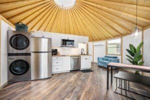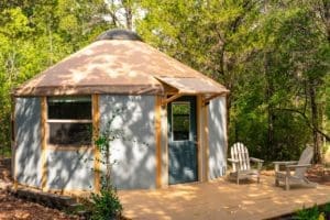 Deciding how to decorate your yurt can be challenging. You want an aesthetically pleasing area without using too much decor or furniture in this limited space. Our gallery is full of yurt design ideas you can utilize for your yurt. You’ll find indoor and outdoor decorating ideas to provide you with inspiration. Among our interior ideas for your yurt, you’ll discover cozy bed designs, small bathroom plans, and intimate seating arrangements for enjoying coffee in the morning. Give your outside area the same love as the interior with cozy chairs or benches to watch the sunrise or sunset on. Install a fire pit to gather around on those chillier evenings. No matter what your vision may be, you can use any of these yurt decorating ideas to spark some inspiration.